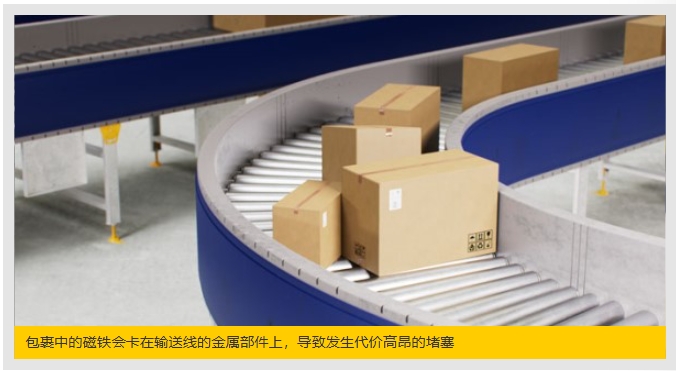 在繁忙的物流中心里,多個(gè)包裹沿著由傳送帶、輸入裝置、輸出裝置和分揀機(jī)組成的輸送線移動(dòng)。包裹中的任何磁鐵都可能卡在輸送線上的金屬部件上,導(dǎo)致包裹堵塞,進(jìn)而不僅嚴(yán)重影響運(yùn)行過(guò)程,還可能損壞輸送線或包裹本身。因此,防止包裹堵塞非常重要。必須能及時(shí)識(shí)別出帶有強(qiáng)磁鐵的包裹,并對(duì)它們進(jìn)行單獨(dú)處理。