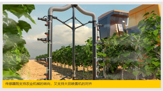 PTFE涂層可保護不銹鋼傳感器耐受常用的作物殺蟲劑傳感器既支持農業(yè)機械的轉向,又支持大田噴霧機的對齊圖爾克的超聲波傳感器測量噴臂與農田或作物間的距離PTFE涂層可保護不銹鋼傳感器耐受常用的作物殺蟲劑傳感器既支持農業(yè)機械的轉向,又支持大田噴霧機的對齊