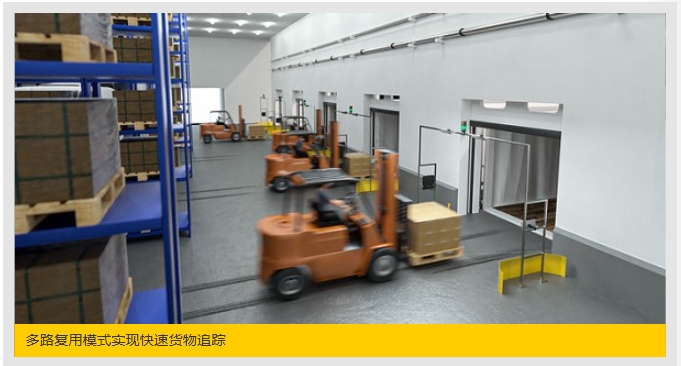在物流領(lǐng)域,在卡車(chē)裝卸貨前必須對(duì)進(jìn)出的貨物進(jìn)行檢測(cè)。利用UHF RFID技術(shù),該檢測(cè)可以可靠甚至遠(yuǎn)距離完成。為此,會(huì)安裝所謂的安全門(mén),用于在叉車(chē)或其他工業(yè)卡車(chē)經(jīng)過(guò)時(shí)直接記錄其貨物。使用多個(gè)天線將非常有效,可以實(shí)現(xiàn)對(duì)所有標(biāo)簽的可靠檢測(cè)。然而,使用多個(gè)有源讀寫(xiě)頭成本高昂。對(duì)于如此多的接口而言,快速開(kāi)關(guān)多個(gè)讀寫(xiě)頭的要求過(guò)于苛刻,并且由于卡車(chē)高速運(yùn)動(dòng),非常容易出錯(cuò)。